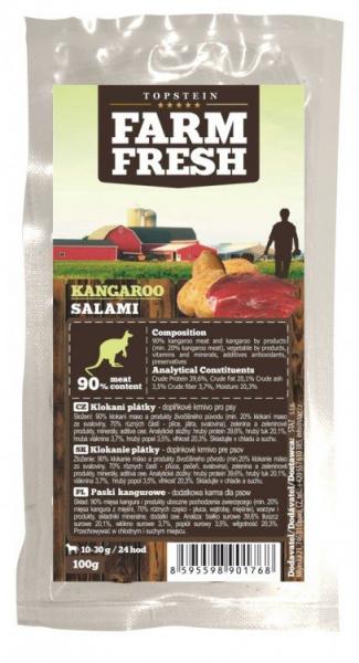 složení: 90% klokaní maso a produkty živočišného původu (20% maso ze svaloviny, 70% z různých částí - plíce, játra, maso ze svaloviny, zelenina a zeleninové produkry, minerály, oleje a tuky.